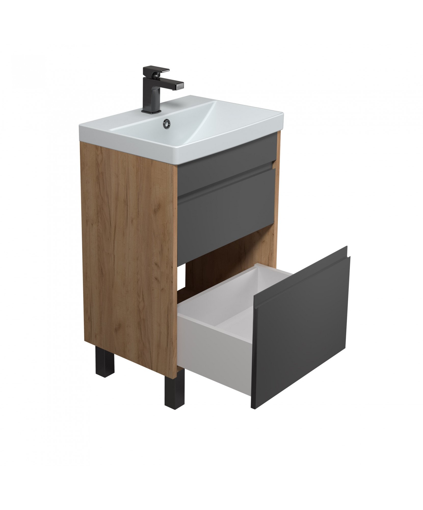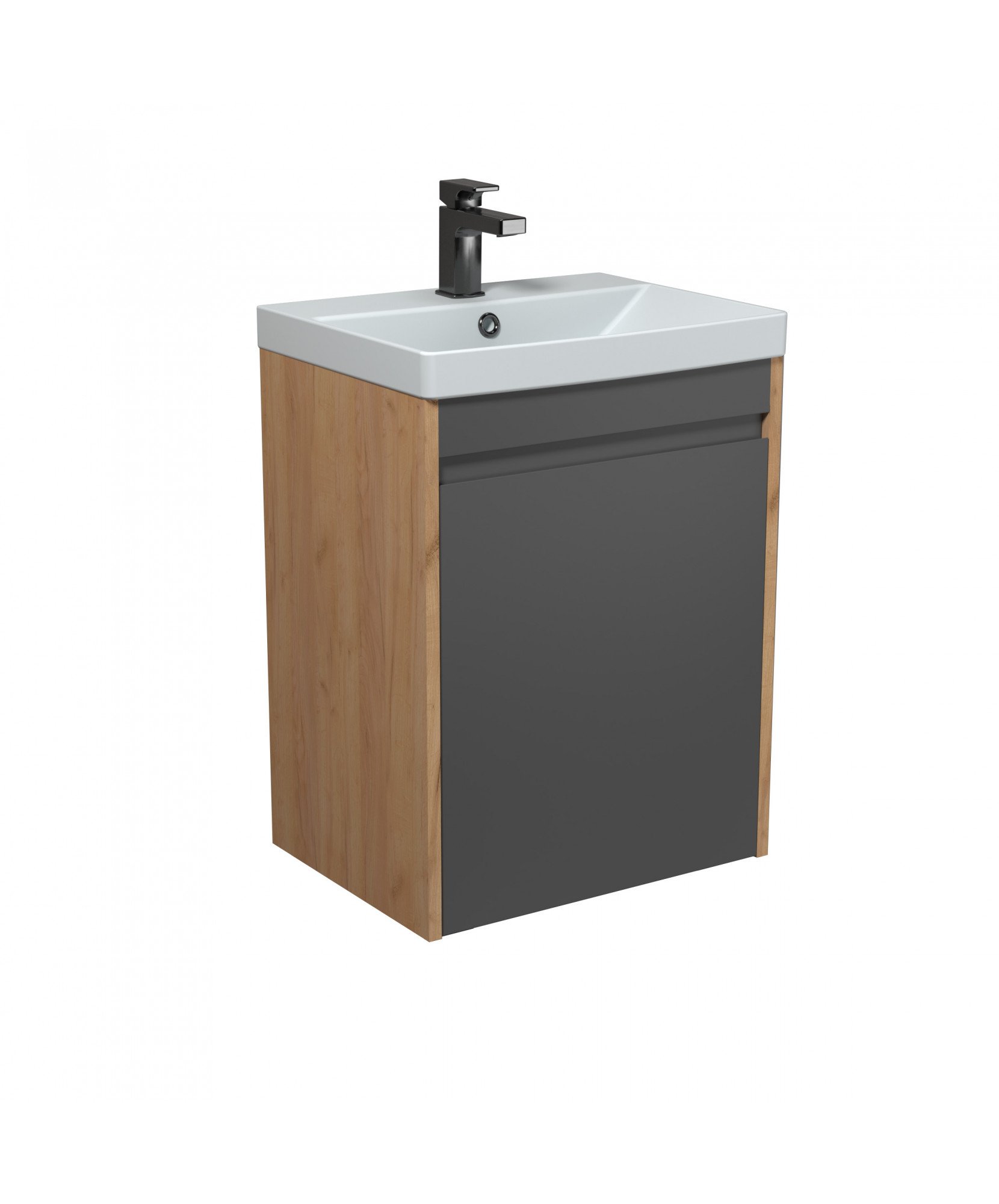 Тумба MDD Olive 50-U з умивальником Sempre 50 графіт з деревом підвісна підлогова