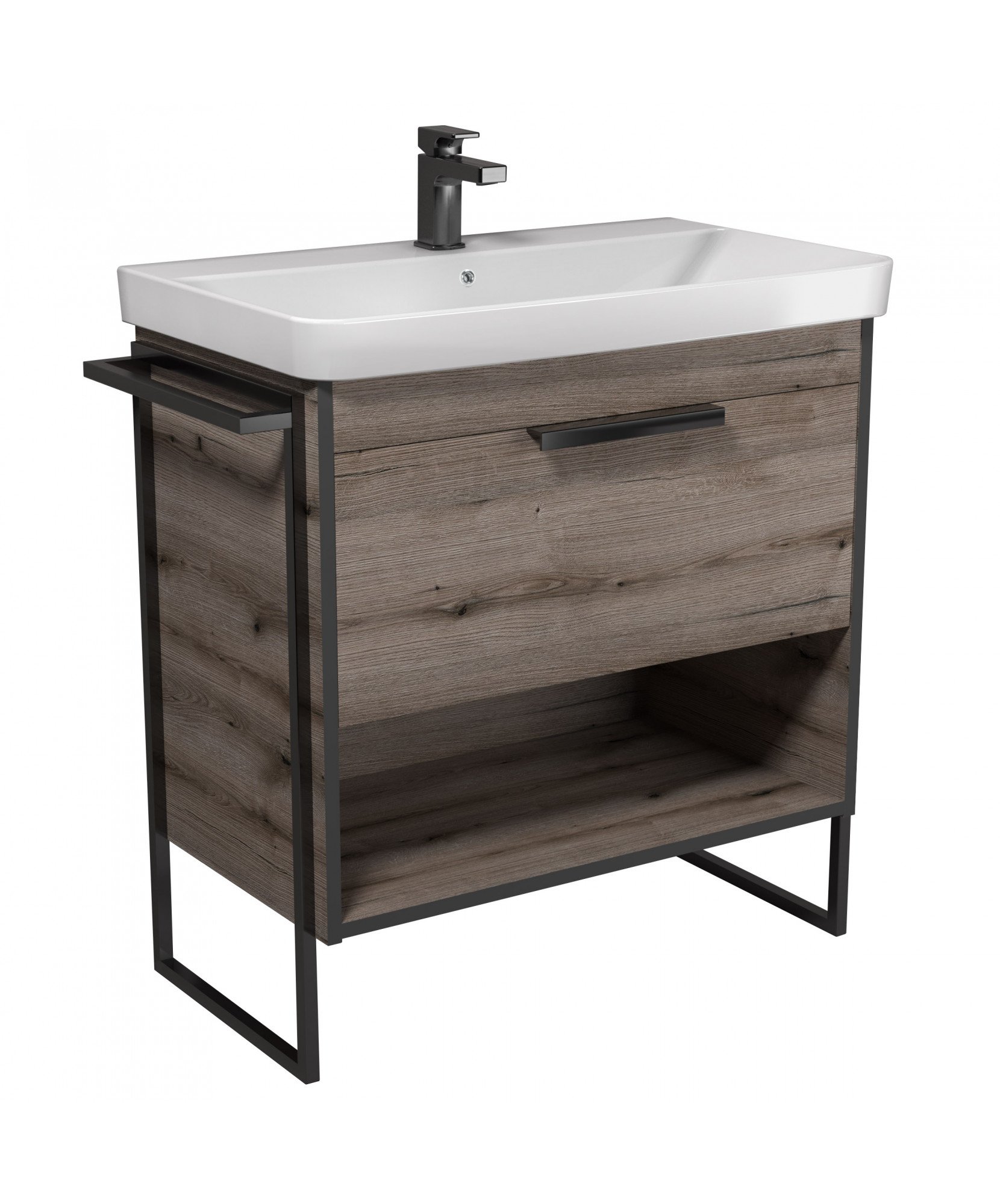 Тумба MDD Line Craft 80 з умивальником Debut 80 дуб крафт чорна