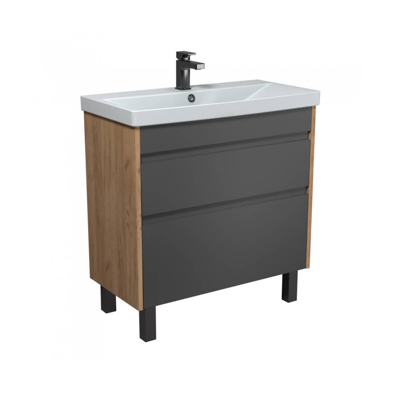 тумба MDD Jessy 80-U з умивальником Sempre 80 графіт з деревом підвісна підлогова