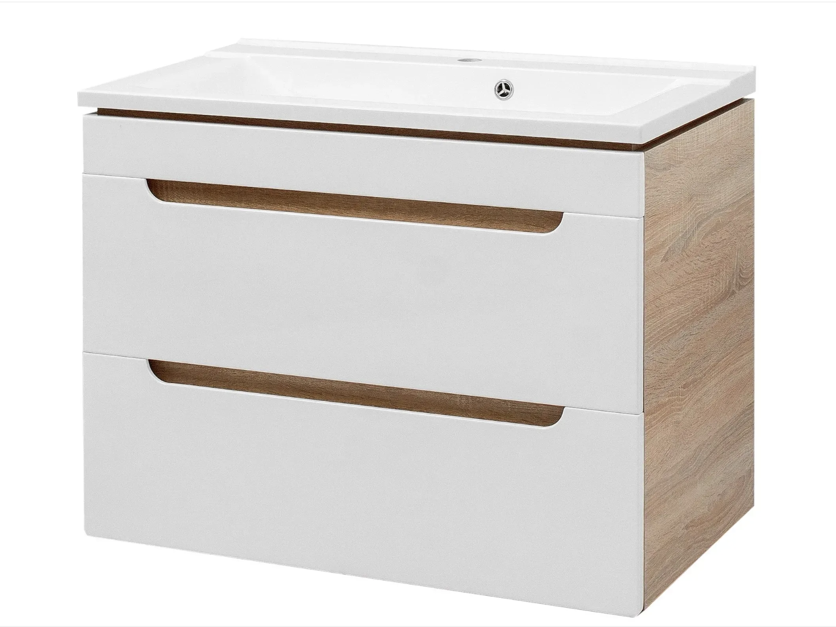 Тумба підвісна Mirater Амелія 70 з умивальником Глорія 70 см Дуб сонома