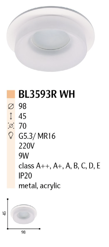 Накладной точечный светильник BL3593R WH