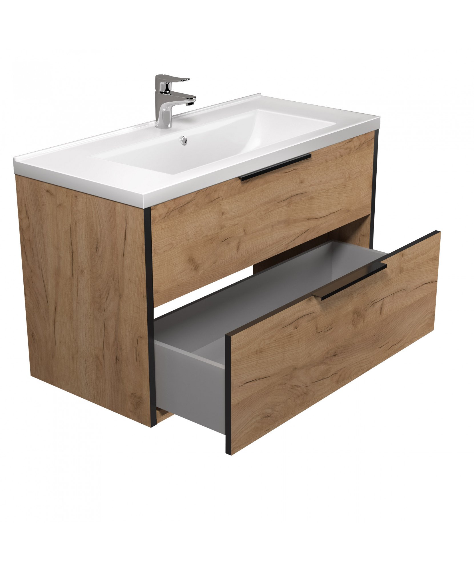 Тумба MDD Line Craft 100 з умивальником Cosmo 100 дуб крафт чорна