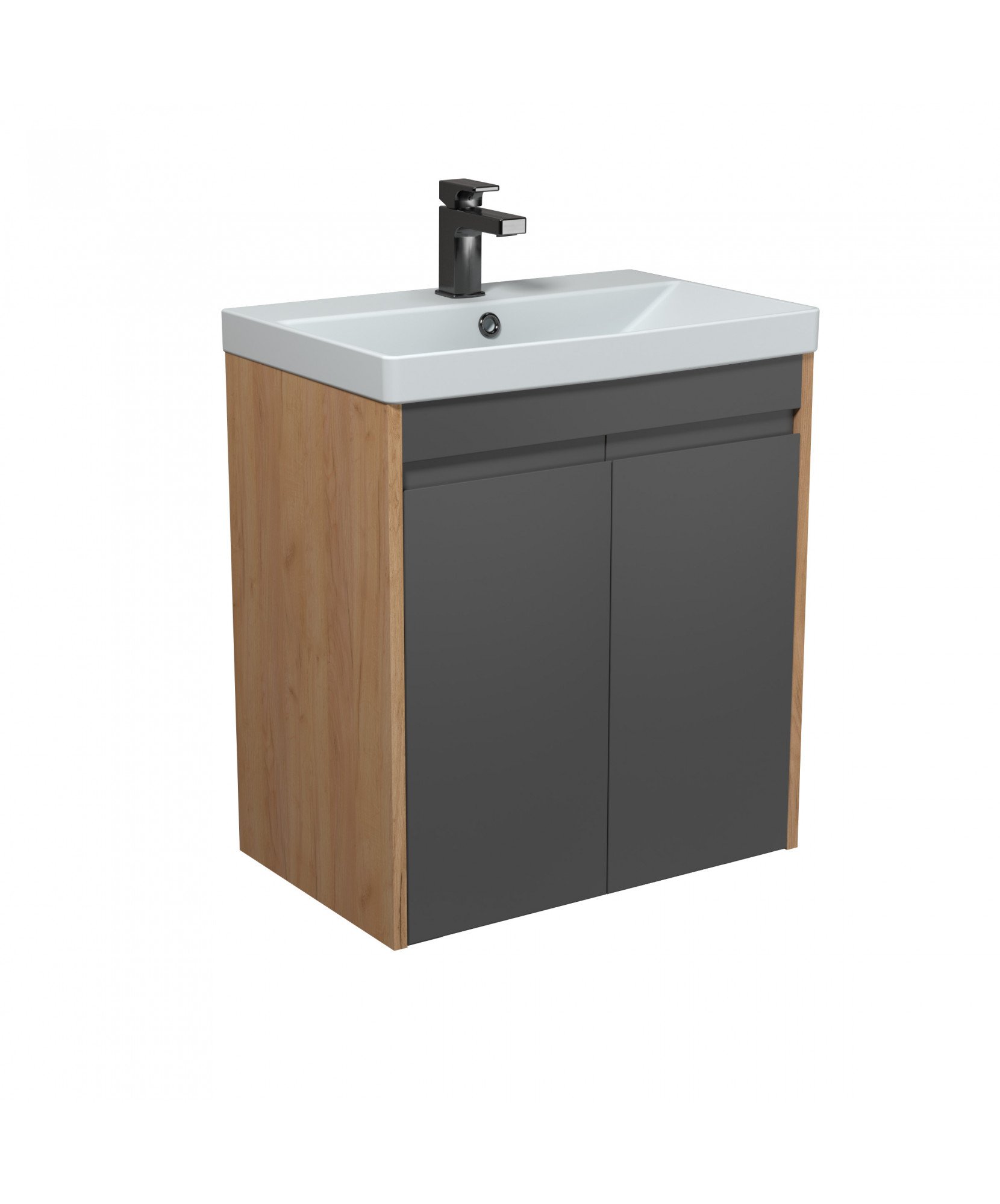 Тумба MDD Olive 60-U з умивальником Sempre 60 графіт з деревом підвісна підлогова