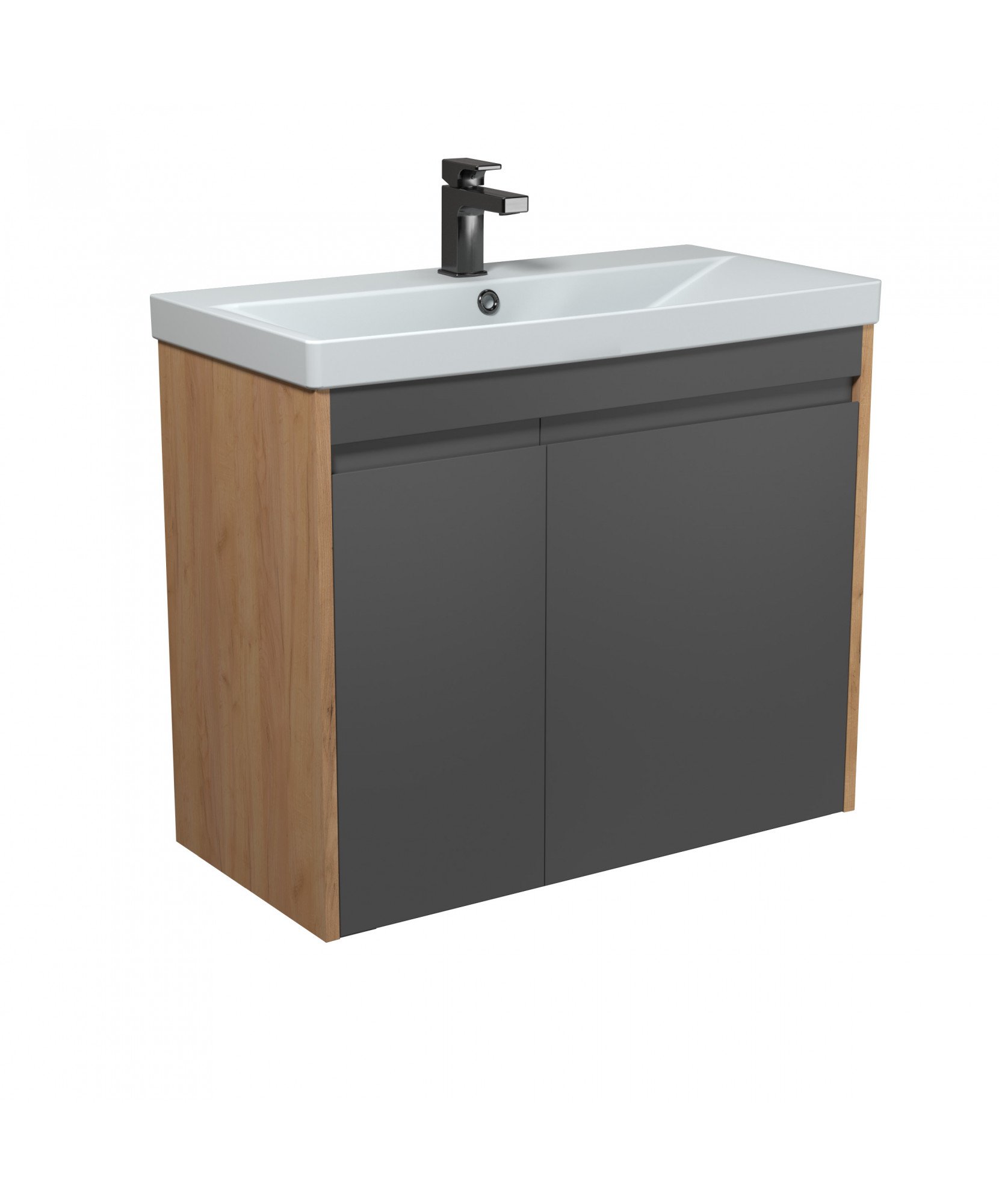 Тумба MDD Olive 80-U з умивальником Sempre 80 графіт з деревом підвісна підлогова