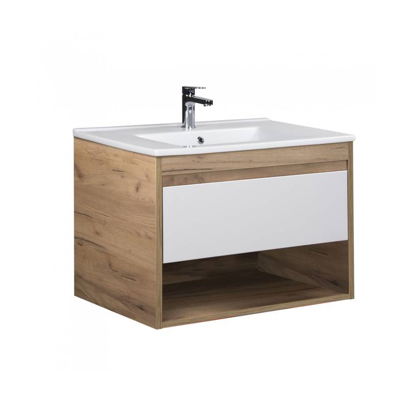 Тумба MDD Oslo 80 Wood з умивальником Cosmo 80 дуб крафт біла
