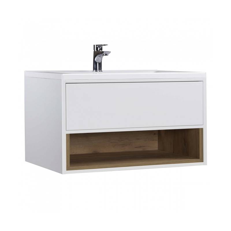 Тумба MDD Oslo 70 Wood підвісна з умивальником ID-70 дуб крафт біла