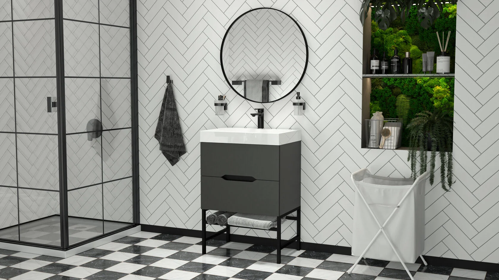 Тумба JUVENTA Afina Af-60 антрацит зі стільницею МДФ та умивальником Neon-45
