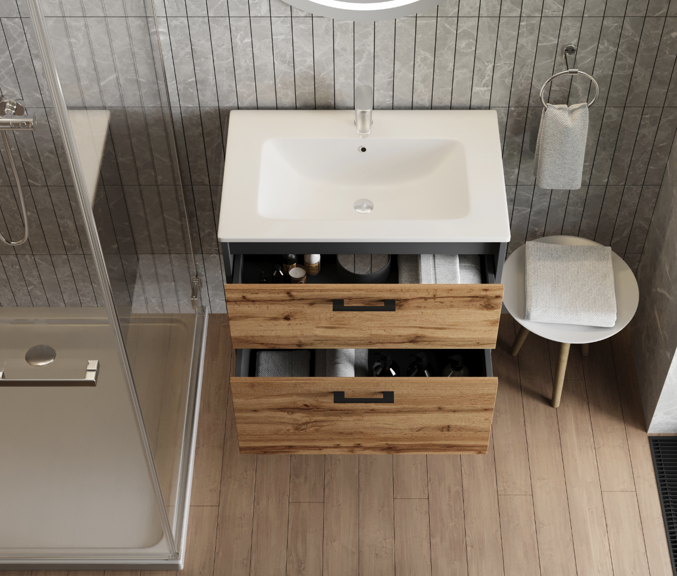 Тумба JUVENTA Afina Af-60 антрацит дуб вотан зі стільницею МДФ та умивальником Neon-45