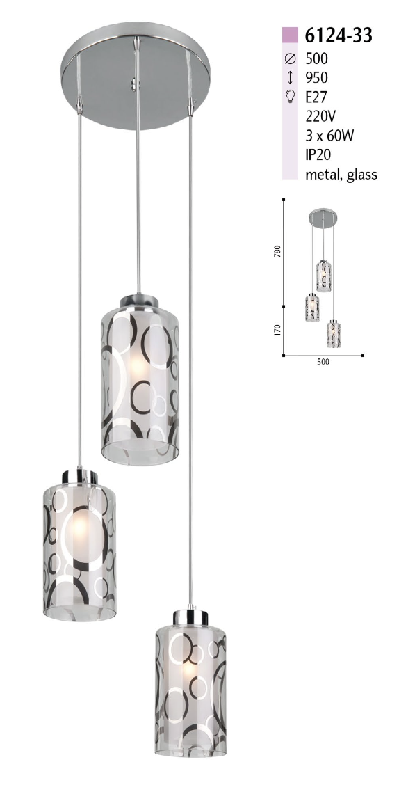 Люстра подвес на 3 лампы 6124-33